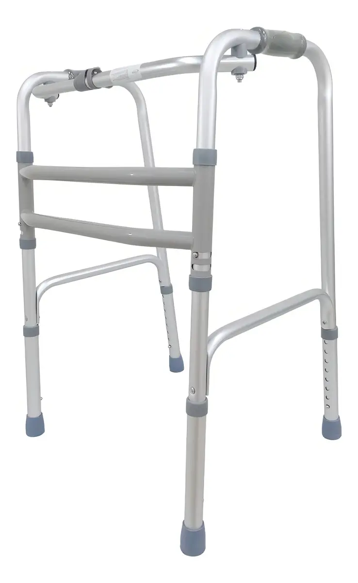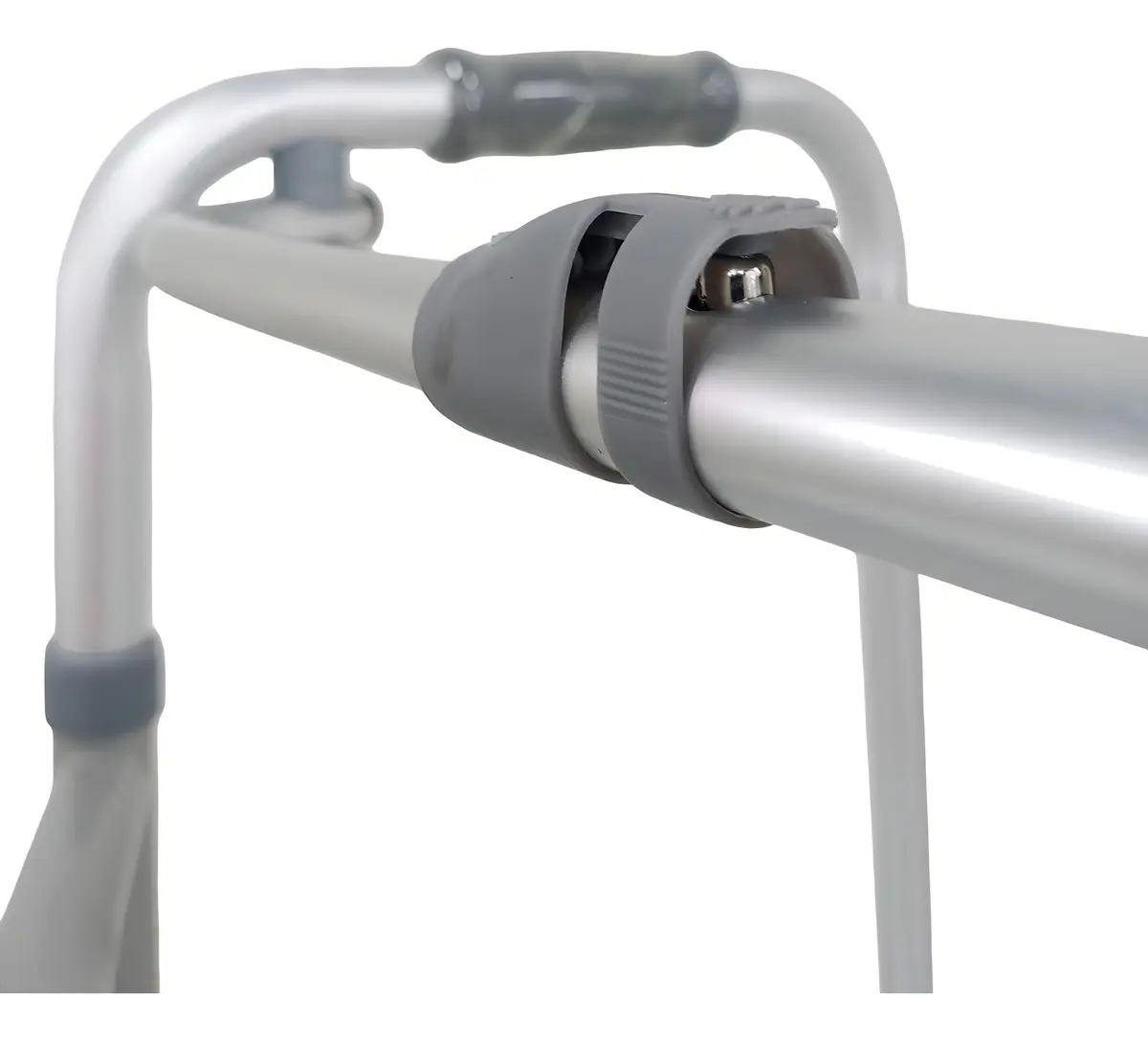 Mecanismo de Plegado Sencillo: Sistema de accionamiento mediante un botón central que permite plegar la andadera de forma rápida y compacta, ideal para guardar en espacios reducidos o transportar en la cajuela de un auto.